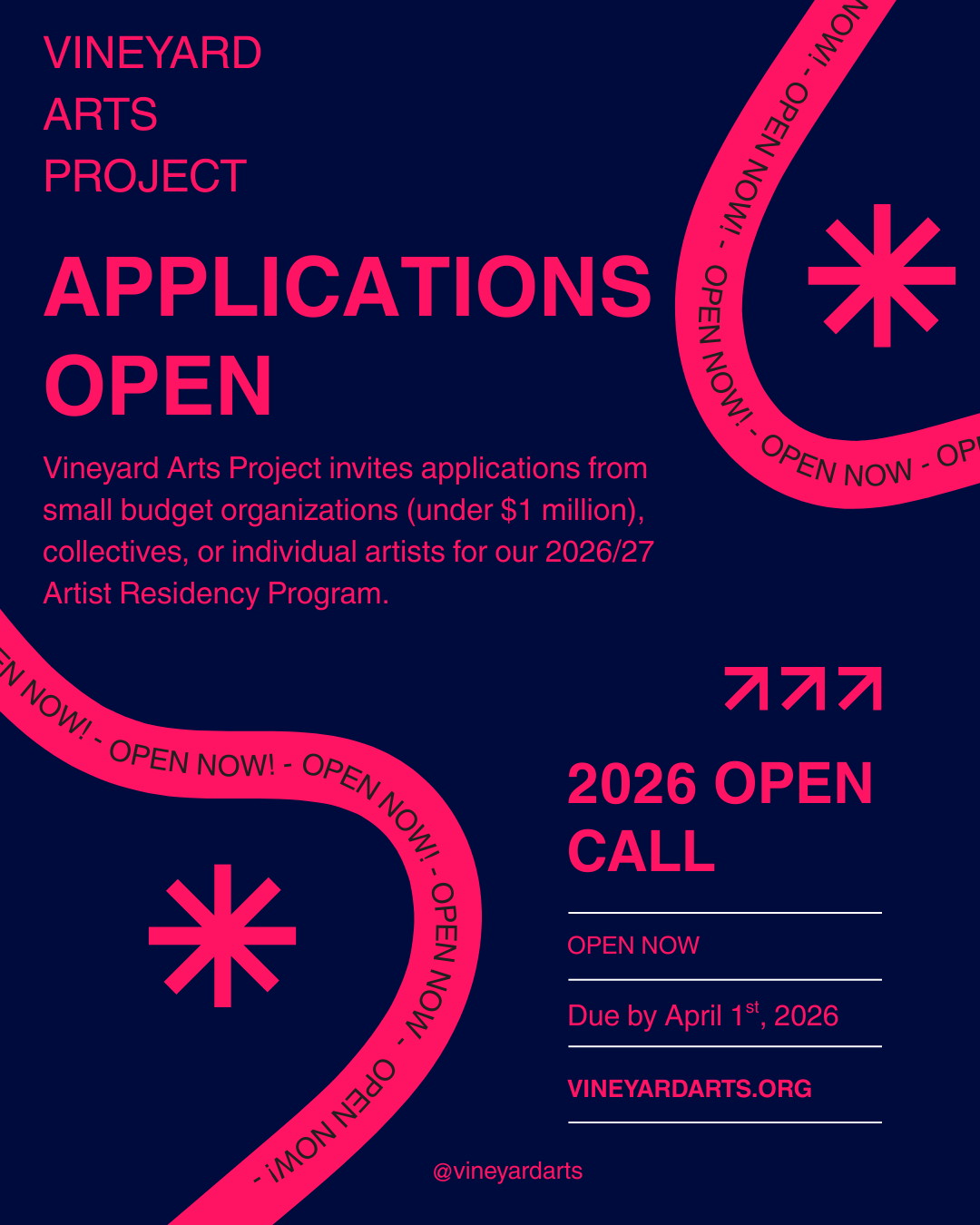 Vineyard Arts Project (VAP) invites applications from small budget organizations (under $1 million), collectives, or individual artists for its 2026/27 Artist Residency Program. VAP is a performing-arts residency and creative incubator dedicated to supporting the development of innovative new work in dance and theatre by emerging and established artists from around the world. The program provides dedicated time, housing, and studio resources in a collaborative environment designed to foster experimentation, artistic dialogue, and meaningful engagement with audiences.